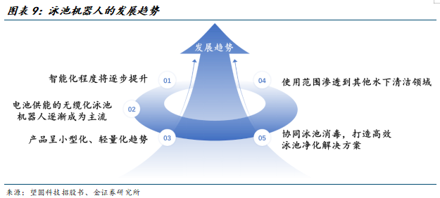 我们判断未来泳池清洁机器人将聚焦五大方向: