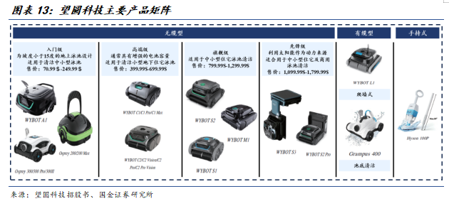 公司产品以无线智能泳池机器人为核心,已形成覆盖家用与商用场景的完整产品矩阵,主打无线型产品。其产品按功能与定位可分为不同系列,满足从基础清洁到高端智能的多层次需求。同时,公司正将产品线拓展至割草机器人、智能灌溉系统等庭院智能生态,致力于打造全面的户外智能生活解决方案。其产品在北美、欧洲市场广泛销售,已进驻Home Depot、Lowe’s、Walmart等超过7000家欧美主流线下门店。