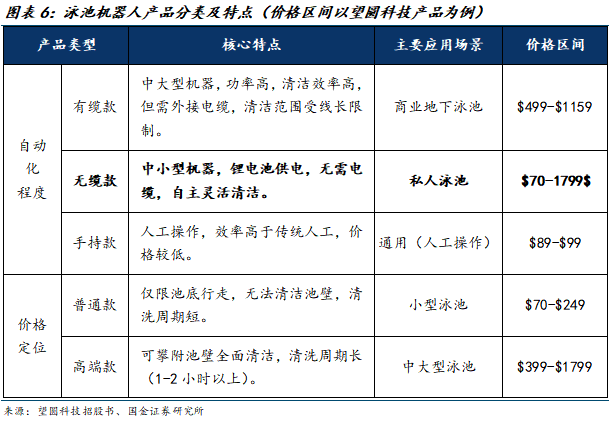 泳池机器人行业需求增长的核心在于实现人力替代。相对于人工清洁,使用周期越长,泳池机器人的经济性优势越明显。参考部蓝Bublue官方公众号,人工清洁的单次费用在50-200元,如果每个月清洁4次,一年下来人工清洁的费用就可能达到2400元至9600元,而不同型号的机器人价格通常在2000-8000元之间,长期使用的经济效应明显。