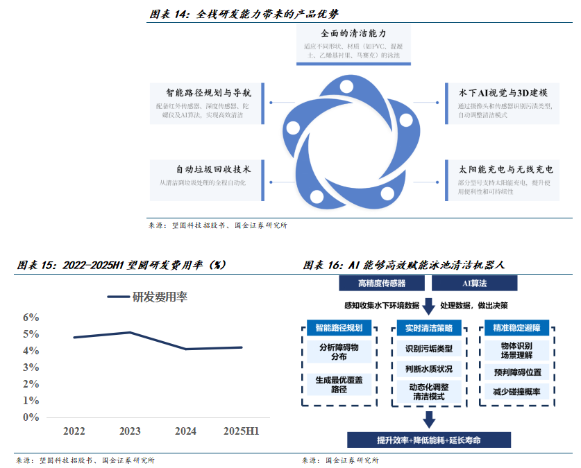 1) 技术方面,龙头企业在SLAM导航算法、激光雷达避障、AI视觉识别、路径规划等核心技术上已形成深厚壁垒。这些技术可直接迁移至泳池机器人场景,实现快速产品迭代和功能升级;